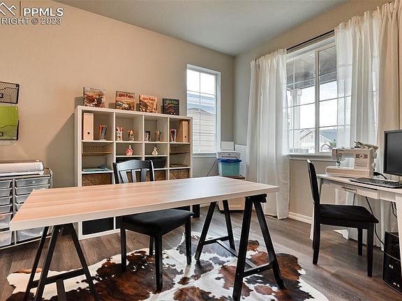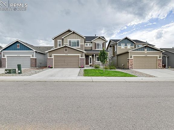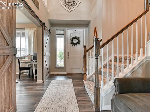 Location Location Location! Near Monument Lake with Mountain Views. This upgraded 2-story home, in the desired Lake of the Rockies Community, makes for a great location when commuting to Denver and Colorado Springs! This home features 4 bedrooms, 4 baths, a 3 car tandem garage, and a fully finished basement. The main floor offers an open concept, with 9 foot ceilings and luxury vinyl flooring throughout. Upon entrance, the perfect home office/craft room with upgraded barns doors and great natural light. The updated kitchen consists of granite counter tops, white cabinets, large island with farmhouse sink, butler pantry, walk-in pantry, and a gas cook top with stainless steel appliances. A spacious dining room is connected with the kitchen and provides a walk out to the patio. The living room features built in shelving, a gas fireplace, a designer ceiling fan, and large windows showing the natural open space behind the home. The custom mud room contains plenty of shelving and the 3 car tandem garage has been fully insulated and dry walled. Upstairs you will find 3 bedrooms including the primary bedroom, large loft, 2 full baths, and the laundry room. The primary bedroom suite features granite counter tops, dual vanities, barn door, a designer ceiling fan, luxury vinyl flooring, and a walk in closet. The fully finished basement had elevated ceilings and includes a large second living area with a custom built wet bar. The basement also features a 4th bedroom and bathroom great for guests who prefer their own space! Blackout blinds have been installed in the primary bedroom, one of the guest bedrooms, and in the living room on the main floor. The outside of the home has been fully landscaped with auto sprinkler systems in both the front and back yard. The backyard comes fully fenced with a concrete patio and 3 planter beds for all your gardening needs! Come check out this wonderful community with short walks to both Monument Lake and downtown historic Monument!