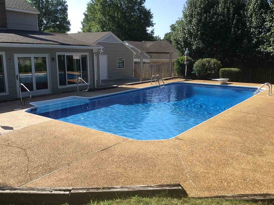New Price! Completely updated bathrooms, kitchen, lighting, plumbing fixtures, faucets and tub valves. New appliances, granite, new laminate flooring down, new carpet upstairs. Fresh paint inside/out. New pool liner/pump. Additional newly poured concrete parking behind iron gate. Garage has heat and air wall unit.