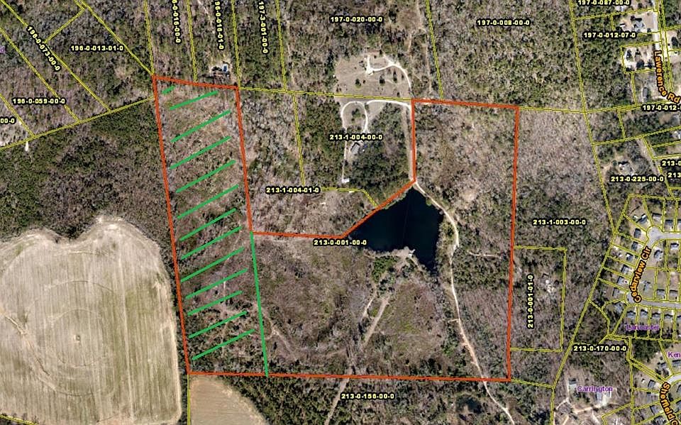 Bring your builder! Beautiful, serene lot while still close to everything greater Augusta has to offer! Enjoy the feel of country living without the inconvenience. Very secluded. The seller is selling 21.97 portion of the lot (marked green in aerial image). This is part of a larger parcel, and the seller is willing to divide this portion into ten acre lots for $40,000. Additional acreage may be purchases at a price of $4,000 per acre.