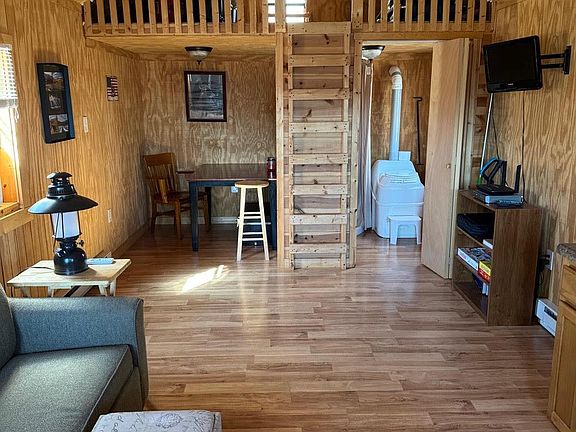 Cute camping cabin for the outdoor enthusiast! Popular mountain valley subdivision surrounded by National Forest. This open concept cabin has a lot of comforts. This isn't camping, this is glamping! Mini fridge, microwave and electric stove for all your cooking needs! Loft area for sleeping. Baseboard heat and a window air conditioning unit keep this cabin comfortable year round. Composting commode. Outdoor living area is just perfect! The pavilion provides shade over the picnic area & is right next to the firepit. Furnishings convey, personal effects will be removed. Electric installed on property. Shed is wired for electricity and features a wood stove for heating. Community ponds and streams nearby for fishing or recreation. Enjoy the great outdoors and go hike, fish, hunt, camp, or ATV on nearby Forest. ***MUST have 4 wheel drive to access***No well or septic on property.*** **Contact owner directly with inquiries and to arrange showings.**