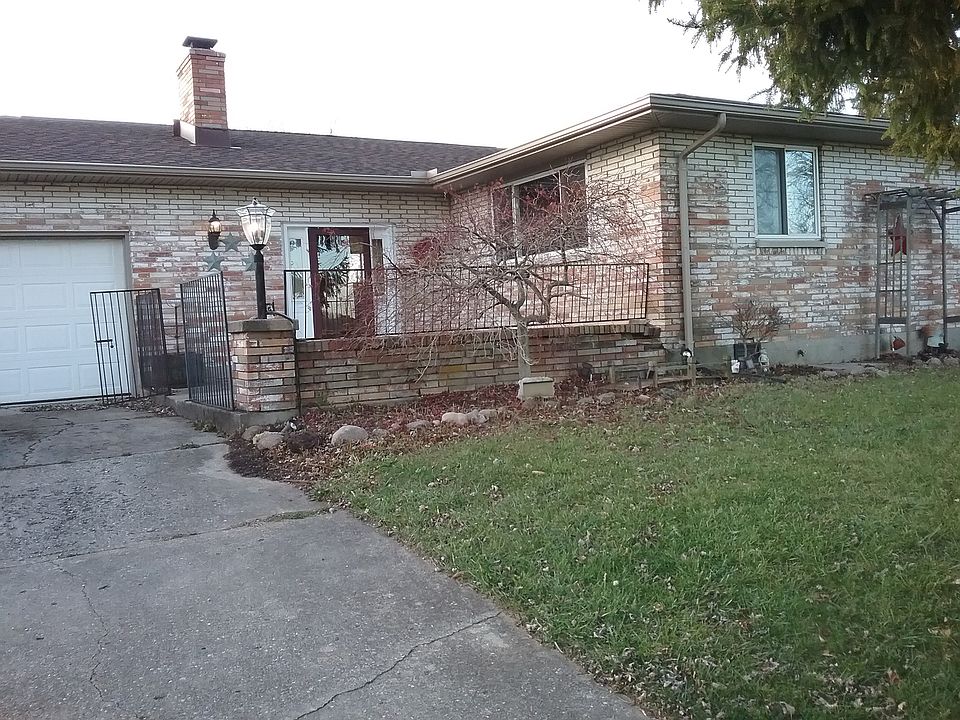 MIni farm with Ranch house, 3 bedrooms, 2 1/2 baths, Several separate buildings for party room, extra garage for repairs or storage, and barn for animals. All new appliances: Dishwasher, stove, refrigerator, microwave. Ceiling fans in all bedrooms, built in 1972. Heated with electric heat. Has Central AC. All rooms carpeted except Kitchen which has laminated hardwood flooring. 4.492 Acres of land. 1652 sq ft plus 2 car garage. Located between New Lebanon and Farmerville. Valley View schools. Call 937-771- 1102 to set up an appointment.