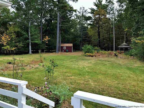 Traditional looking on the outside with contemporary touches on the inside. Charming 3 Bedroom, 2 Bath, circa 1935, year round cottage/ranch sited on 1.18 acres. Less than a 5 minute drive to the heart of Woodstock village, you can enjoy all the conveniences town has to offer. Cozy glass enclosed heated porch greets you as you enter large living room. Flanked by two bedrooms, and freestanding gas stove for cool mornings and evenings. Access to sun drenched deck, and eat in country kitchen. Beautiful hardwood and wood floors throughout. En suite master bedroom with soaring cathedral ceiling, skylights, and french doors to deck. Ample closet space and ceramic tiled full bath complete this light filled space. Great working kitchen with lots of oak cabinets, counter space, and pantry. Access off kitchen, to side deck for grilling and entertaining. Full bath with alcove for washer/dryer. Finished loft with upper deck, areas for single or twin beds, desk, drafting table. There's a working sink as well. Perfect work space or bedroom. Circular driveway with extended parking area can accommodate 4-5 vehicles. Large level, private rear yard, lined with trees, plantings, landscaping, and screened gazebo beckons you. This warm inviting property lends itself as a full time primary home or vacation rental. Towns of Woodstock and Saugerties, neighboring town to the east, have so much to offer. Fine dining, music, cinema, unique shops, antiques, hiking, and the wonderful energy of Woodstock.