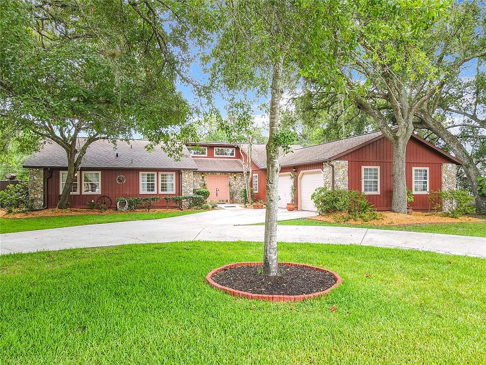 $15,000 PRICE IMPROVEMENT!! Welcome to your own secluded paradise in Kissimmee, Florida, where this hidden gem awaits you! Situated on a sprawling 1.08-acre lot with NO HOA, this meticulously maintained home offers the perfect blend of comfort, convenience, and security. Upon arrival, you'll be greeted by an extended round driveway leading to a spacious 2-car garage, providing ample parking space for guests. As you step inside, the warm foyer invites you to settle in, offering closets on both sides for convenient storage. The heart of the home is the extra-large living room adorned with vaulted ceilings and four skylights, bathing the space in natural light. Cozy up by the fireplace on chilly evenings, or open the double French doors to the screened rear porch, offering serene views of the expansive backyard. The generously sized kitchen is a chef's dream, boasting 36 kitchen cabinets, a gas stove, and a treated well ensuring no water bill worries. With its seamless connection to the garage, bringing in groceries is a breeze. Enjoy casual meals in the spacious "Eat-in" kitchen area, or entertain guests in the adjoining formal dining room. The master suite is a true retreat, featuring two very large walk-in closets, an ensuite bathroom, and double French doors leading to the rear screened patio. Two additional bedrooms, both facing the front of the property, and an additional bathroom complete the living quarters, offering plenty of space and storage for the whole family. This home is equipped with premium features for added peace of mind, including hurricane-proof impact windows throughout, a dedicated video security system, and a $65K dedicated generator ensuring continuous power supply during natural disasters. Recent upgrades include a brand-new 5-ton AC unit installed in 2022 and a water heater replaced in 2020. With its ideal location, spacious layout, and abundance of amenities, this hidden gem offers the ultimate Florida lifestyle. Don't miss the opportunity to make it yours today! USE THE FOLLOWING LINK FOR 3D VIRTUAL TOUR : https://nodalview.com/s/27Rx1ysrvFrOWqHy6vcv04