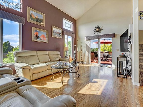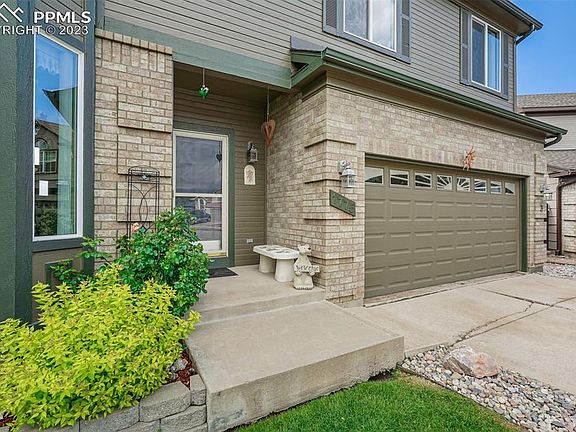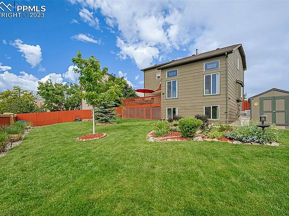 Upgraded 2 story home walking distance to Otero Elementary, & Cheyenne Meadows Park, minutes from shopping, entertainment, military bases & main roads. Entry opens to solid oak hardwood floors leading you to the light & bright great room & flowing throughout the main level. The open room has vaulted ceilings, walk-out access to the elevated deck & large energy efficient vinyl windows letting the natural light pour in. The adjoining dining room is perfect for entertaining family & friends w/easy access to the kitchen. The updated gourmet kitchen has newer brushed nickel hardware, stainless steel appliances, undermount sink, granite counter tops, mosaic tile backsplash, pantry, island, & bay window eating nook. From the main level access, the elevated deck captures mountain views, overlooks the backyard oasis & offers privacy & southern sun. Fully fenced, backyard w/pro landscaping. Back inside the upper level primary bedroom boasting luxury vinyl plank wood floor, mountain views, & updated 4pc bath. French doors separate the bath with modern vanity w/glass counters & double basin sinks, custom mirrors, updated lighting, tile floor, & soaking tub. 2 additional upper-level bedrooms have easy access to hallway full bath. One of the bedrooms has bay window w/ great views of the mountains. Head downstairs to the lower-level family room or large 4th bedroom w/garden level windows letting in abundant light. The room features newer LVP flooring & expansive flexible space ready for all your needs. Nearby modern ¾ bath w/tile shower surround & LVP floor. Large unfinished storage room w/window could be another bedroom. Additional highlights include Central A/C, huge yard w/dog run, upper-level laundry, newer carpet & more. See it today!
