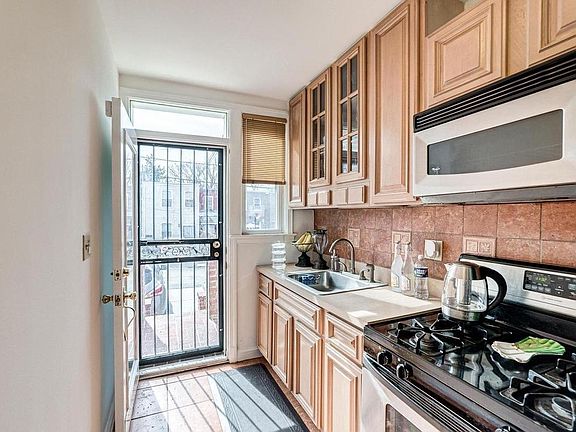 This elegant updated 3 bedroom, 2 bath residence is a modern masterpiece with stunning finishes and elegant details throughout. The gourmet kitchen offers a breakfast bar, island with farmhouse sink, quartz countertops, subway tile backsplash, ample white shaker cabinets, and stainless steel appliances-gas cooking. Light filled, spacious living room-perfect for entertaining. Gleaming hardwood floors on main and upper level, high ceilings, recessed lighting and freshly painted throughout. Walk upstairs to the 3 great size rooms with plenty of closet space and a luxury full-bath. The fully finished walk-out lower-level offers luxury vinyl plank floors a family room, full-bath, separate laundry with full size washer/dryer! Parking is in the rear. The fully finished walk-out lower-level offers luxury vinyl plank floors a family room, full-bath, separate laundry with full size washer/dryer. All utilities are included
