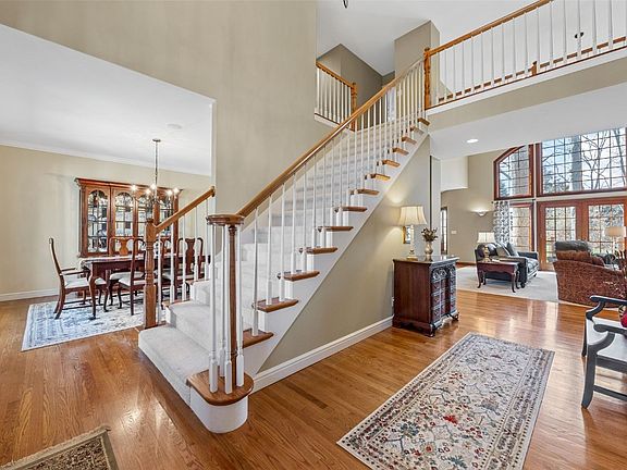 Welcome to your dream retreat in the highly sought-after Irish Hills neighborhood! Nestled on a quiet one acre wooded lot, this expansive luxury residence is a rare find. Main level includes a chef's dream kitchen with stunning cherry cabinets, granite counters, premium appliances and real pasta drawers! Other features found on this level include a beautiful formal dining room, a true great room with vaulted ceilings and fireplace, as well as first floor laundry, a massive primary bedroom with dual walk-in closets and an en-suite bathroom with heated floors. Level two includes three large bedrooms, two full baths and a large bonus room. Heading to the lower level, note an additional bedroom, full bath, built-in entertainment system in the rec room and an endearing bar, walk-out and oodles of storage. Enjoy fresh air by way of the screened-in porch, expansive deck and awesome fire pit. The over-sized three stall garage is an added bonus. Easy access to 380. This home has been meticulously cared for by one owner, and it shows. Come check it out today!
