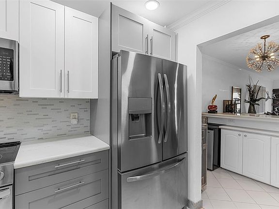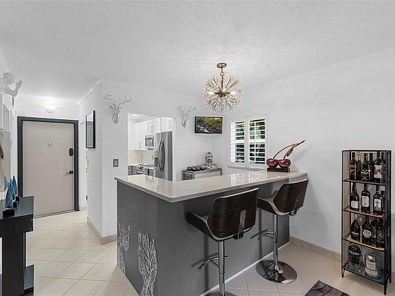 Enjoy serene water views from this bright and airy corner unit featuring two desirable bedrooms with it on private bath, split layout for added privacy. The remodeled kitchen boasts sleek stainless steel appliances, a pantry closet, and contemporary finishes. Both bathrooms have been tastefully updated, complementing the unit’s fresh, modern feel. Additional highlights include newer A/C system and upgraded electrical panel, energy-efficient tankless water heater, stylish built-in bar, perfect for entertaining. Hidden Harbor is a quiet gated community that offers a host of amenities, including secure entry, elevators, an upgraded fitness center, heated pool with a beautiful brand new grill area and a smoker, and relaxing sauna. Unit comes with an assigned parking space.