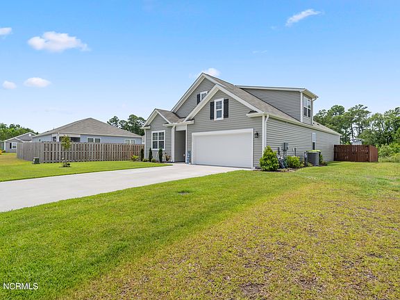 MOTIVATED SELLER! Looking for a turnkey, better-than-new home on a corner lot in an amenity-rich community? Look no further! This 1.5 story augmented Dover plan has numerous upgrades taking it from a builder basic home to what seems like a model home! No flooding issue with home in recent ''no name'' storm!! As you enter the home though the foyer, take note of the 9 foot ceilings, LVP flooring & gorgeous added wainscoting & crown molding. The mostly 1 level living floor plan features 3 bedrooms and 2 full baths on the first floor with an open flex room perfect for an office, playroom or den. The open concept kitchen with granite countertops, tile backsplash, ample cabinetry, pantry, dishwasher, disposal & stainless steel appliances is illuminated by seller added pendant lights over the island adding to the coastal charm. The large open living room & dining space flow seamlessly to the sliding glass door out to the covered rear patio with roll down shades. The Owner's bedroom with ensuite bathroom contains dual vanities, commode room, walk-in closet & step in shower with glass door. The second level features an additional newly enclosed bonus room with closet & walk-in attic access perfect for a play area, movie room, craft room, sleeping space & more! Additional conveniences and upgrades include whole house water filter, garage workbench & shelves, laundry room with cabinets, ceiling fans, additional upgraded lighting. Outside you'll discover the home sits on a premium lot that backs to nature with added fencing for privacy & has a common area space to the right giving it the feel of a private corner lot on a no outlet cul de sac! A 2 car garage with epoxied floor offers plenty of room for vehicles, storage & more. Enjoy all the amenities Avalon has to offer including community pool, playground, fire pit, pickleball, dog park & kayak launch into the community lake. Close Oak Island & Holden Beach as well as historic Southport, Shallotte, Leland & Wilmington