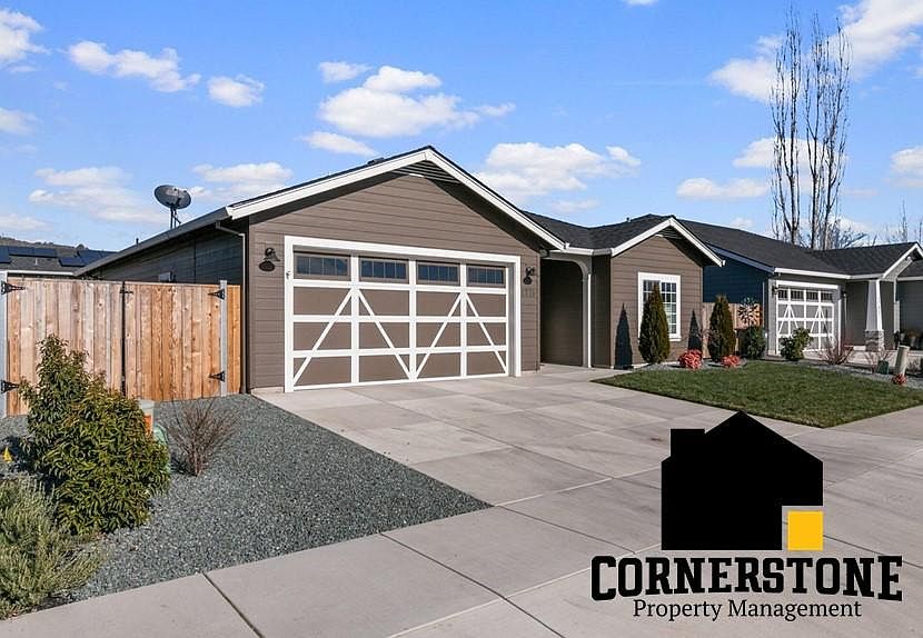 Beautiful newer construction 3 bedroom 2 full baths home, built in 2019. Split floor plan with a large master bedroom including a walk-in closet and en suite bathroom. Light and bright open concept main living area. Large kitchen island features beautiful granite counters. Plus a gas fireplace in the living room. Nice quiet neighborhood in East Medford, on a dead end street. Views of surrounding mountains nearby. Peacefully quiet, and next to an old pear orchard, perfect for afternoon walks. Fully fenced back yard with an amazing putting green and is very low maintenance. A MUST SEE! 1 pet allowed under 50 pounds, with additional $700 pet deposit No Smoking 1-year lease Washer and dryer hook ups Available 5.6.22 Rent: $2,695 Deposit: $2,900 Managed by Cornerstone Property Management 1 pet allowed under 50 pounds, with additional $700 pet deposit No Smoking 1-year lease Washer and dryer hook ups Available 5.6.22 Rent: $2,695 Deposit: $2,900 Managed by Cornerstone Property Management