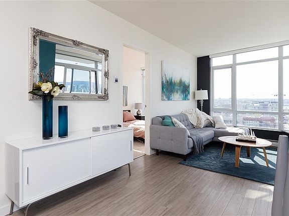 Welcome to OSPAL located in the highly desired Olympic Village.This 2 bed, 2 bath plus flex home has floor to ceiling windows allowing plenty of natural light w/ breathtaking views of the city, mountains & water. The kitchen offers top-notch S/S appliances, a gas range stove top & a stone countertop with plenty of storage room.The ensuite bathroom features a spa-inspired bathroom while the second bathroom features a rain shower head. Amenities include a fully equipped gym, a yoga room & a spa area with a sauna/steam room! Location is close to all forms of public transportation, restaurants, bars, banks, cafes & grocery stores. Connected to the building you will find Starbucks, Glory Juice, Tractor, & Brewhall craft brewery. Pets & Rentals are welcome.