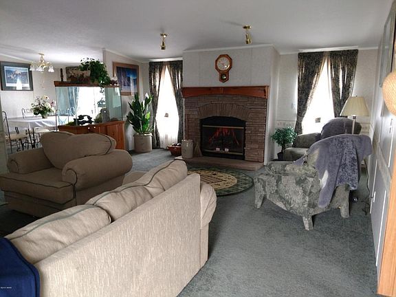 Very Well kept Manufactured home, floors still look new. Side Set on Narrow, long lot just off Silver Creek Drive. Entry into extra large Living room spanning the width of the home. Formal dining area between Kitchen and Living. Split bedrooms with Spacious Master (King Sized) up front. Large Master Bath with two closets, linen cabinet, double sinks, soaking tub and separate shower and skylight. Two other bedrooms off the kitchen with a bath in between. Kitchen with all the appliances, and a breakfast bar. Large Laundry and storage area with back door off the back of the home. Carport Parking in fenced yard. Some Furnishings to convey.