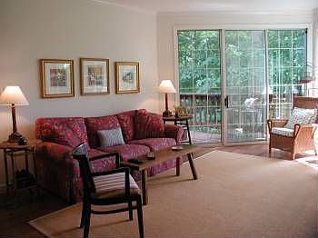 Enjoy the magnificent panoramic views of the lake from this spectacular elevated 2 bedroom condo in the heart of Richmond's marvelous Raintree Commons. Floor to ceiling windows provide breathtaking water views from beautifully decorated living and dining rooms, kitchen, and master bedroom. 2 full ceramic baths, gas fireplace, ceramic kitchen, wood floors in all rooms, and elevated deck overlooking the lake! Nine foot ceilings give this home an open, airy feeling. Sliding doors across the living room and master bedroom open on to a deck overlooking Raintree Lake. Convenient to racket and swim club.