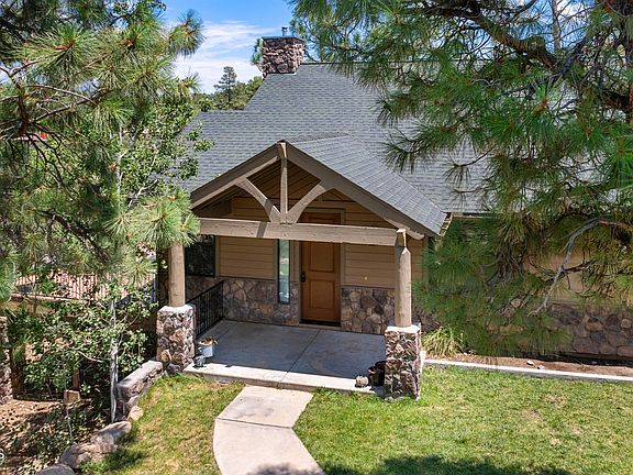 Beautiful home located in the Ponderosas. Feelings of seclusion and privacy are what you will find here in this beautiful forest home, yet you are only 10 minutes from downtown Prescott. 3 bedrooms and 3 bathrooms with an open split floorplan. The spacious great room is open and bright with vaulted ceilings and huge picture windows and features a gas fireplace. The kitchen features stainless steel appliances, six burner Wolf gas range with hood, farm sink, pantry and reverse osmosis water system, quartz countertops, a huge kitchen island- the perfect entertainer's kitchen. Tile flooring throughout the main living areas with carpet in the guest bedrooms and composite wood in the primary bedroom. The ensuite in the primary bedroom is spa like and luxurious. There is a powder room for
