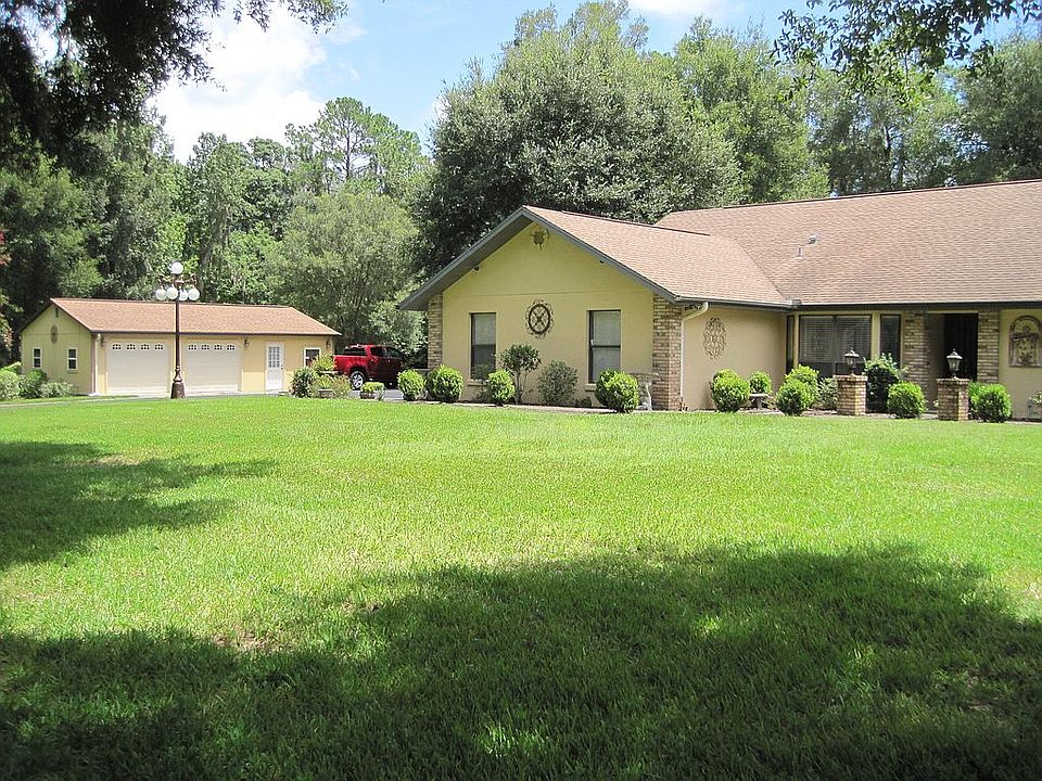 Must see! Private double gated 4 acre park like estate in the heart of Ocala. Located 5 minutes to shopping, groceries, and dining on Hwy 200, and still only 15 minutes to WEC. This 3 bed, 3.5 bath pool home has it all. Very open floor plan with tall ceilings, huge office, beautiful kitchen, 2 car garage, and plenty of room for entertaining. The large master bedroom features 2 walk in closets, 2 bathrooms, and a door leading out to the brick paved terrace and screened pool. A beautiful property on very quiet and private street. It features 2 separate paved and gated entrances, two detached 2.5 car garages with one having AC and office, a wood barn that could easily be converted to a cute 2 stall horse barn. Plenty of room for paddocks and arena if needed.