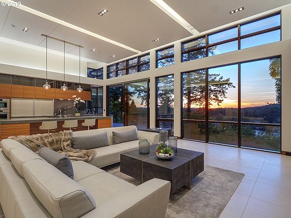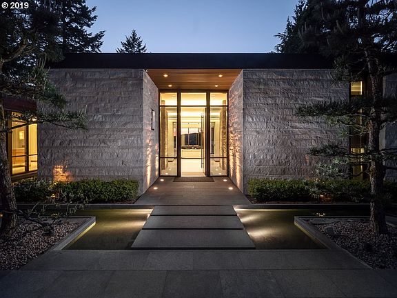 A Mid-Century Modern Designed Glass Menagerie on Oswego Lake.This entire property was built to ease the soul & please the eye. Built w/an affinity for minimalism this estate, which has entirely main level living, is unique to Lake Oswego. Thoughtfully designed to satisfy both form & function. Textured Indiana limestone exterior, Dark Sapele wood windows and trim; Interior has heated Adriana Limestone floors t/o & white marble and more.
