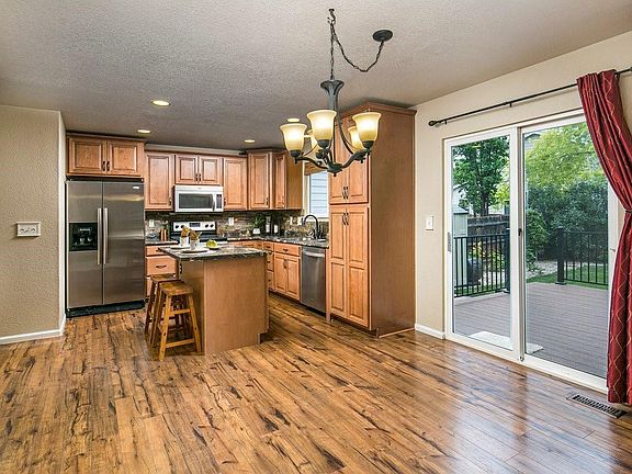 Beautiful 2 story home in North Loveland! This home has it all with room to grow! Featuring a newly remodeled kitchen with a custom slate backsplash, an open floor plan, custom slate on fireplace, gorgeous laminate/wood flooring in kitchen, dining room, master bedroom and second bedroom , a 3 year old carpet and a 3 year old roof and a 3 year old whole home humidifier. 4 beds, 3.5 baths, composite deck off back that's perfect for entertaining, spacious yard with sprinkler system, A/C, 2 car attached garage and includes washer and dryer! Don't miss out on this house at this price, it won't last long!