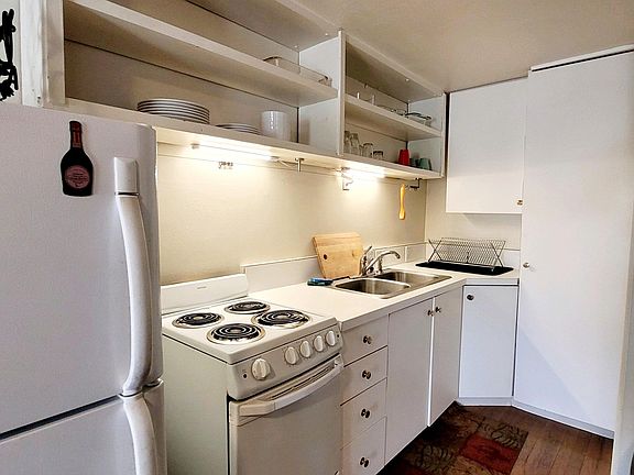 This condo has a king bed, comfortable sleeper sofa, full kitchen, bathroom, flat screen TV, wifi and cable with off street parking. This is a small apartment, and 3 people max is desired.