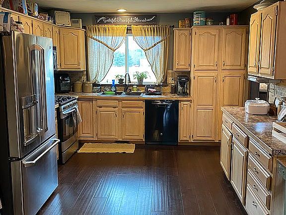Ready made homestead on 10 acres! Spend this spring and summer gardening in the large vegetable garden out front with Everbearing strawberry patch. Fruit planted last spring, 10 varieties of apples and 2 peach trees, 3 grapevines and 3 blueberry bushes. Some landscaping, but plenty of space to put your own personal stamp on the yard and garden. On the main level is a large open kitchen with very large dining space, living area, 3 bedrooms and bathroom. Master bath has a private entrance to the bath, and also a slider to back deck. Deck can also be accessed through living room French doors. The deck has steps down to a patio paver path to the 30 foot above ground pool. There is also a large firepit perfect for roasting marshmallows and hotdogs. Outside the master bedroom on the deck is a covered pergola, so you can sit in the shade and enjoy the privacy of your backyard. Downstairs is another 2 bedrooms and bathroom, furnace/laundry room, large storage room and very large rec room area which is unfinished but useable. Outside is a one stall barn by the pool with 110 electric and lighting, a 16x24 run in shed for animals with a small pasture. All of this on a very private 10 acres accessed by a legal easement, 1/4 mile off the road. The remainder of the property is approximately 5 tillable acres, and approximately 3 acres of a good grass/alfalfa hay field. Bring your animals, zoned agricultural! Maintenance free exterior, roof and pool liner new in 2013, furnace new in 2016, added A/C in 2019, tankless water heater new in 2021. All appliances included.