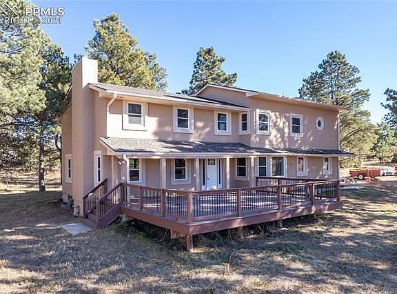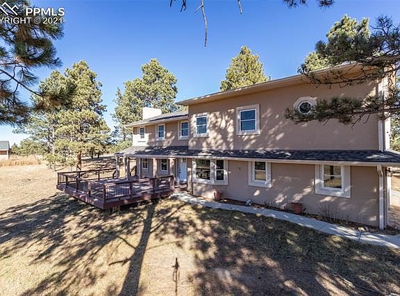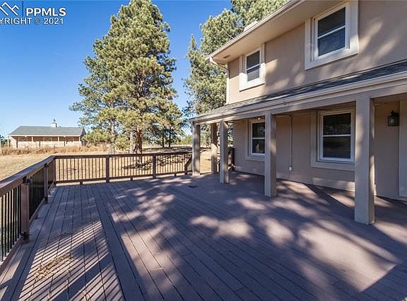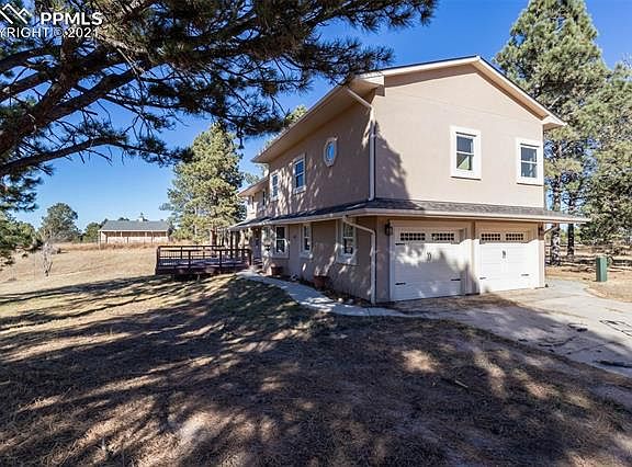 Park like setting with beautiful mountain and pasture views. Fantastic privacy. 3 stall barn, heated oversized separate 2 car garage/ shop with water and internet available. Fully fenced with 21/2 acres separately fenced for dogs and entire property fenced for horses. Gated secure entry features solar powered electric gate. Exterior of home was stuccoed and all windows replaced with high efficiency windows in 2013. Huge master retreat features a fireplace, jetted tub and large walk-in closet. Gorgeous views from every room. Wide plank acacia hardwood floors on main level and stairs. Fabulous Trex deck faces west. Many extras!