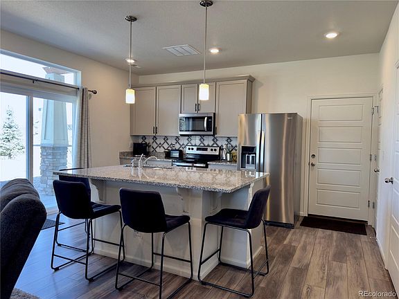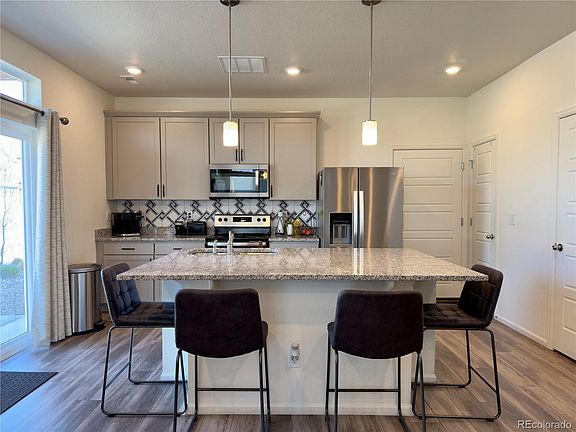 Built on the BEST upgraded lot offered in this Reunion Subdivision, you’ll have breathtaking mountain views out every west facing window, away from major roads and privacy from neighboring homes. This stunning modern attached home offers an open floor plan and ALL the builder upgrades including granite countertops throughout. This was the former model home office and the interior was totally taken down to studs and rebuilt 1 year ago! IN ADDITION, we are offering $5,000 toward your closing costs. Hurry and make this your new home. The kitchen is a chef's delight, featuring sliding patio doors leading to the only pergola covered patio in the subdivision to enjoy the sunsets. Upgraded designer gray shaker cabinets with stylish handles and tile backsplash, Stainless steel appliances gleam under the pendant lights. The island with seating area is ideal for casual meals or hosting guests. A pantry closet ensures ample storage space for all your culinary needs. Luxurious touches abound throughout the home, including a powder room on the main floor, durable LVP flooring, and windows that flood the space with natural light. Energy-efficient windows and tankless hot water heater add to the home's eco-friendly appeal. Upstairs, you'll find two spacious bedrooms, en-suite bathrooms with granite, including a primary bedroom with a walk-in closet. Convenience is key with an upstairs laundry room situated near the bedrooms.