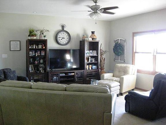 Immaculate 4 BR ranch home situated just outside of town on 5 acres is loaded with exciting features, including 2 full and 1 half baths, fully finished walkout basement, open concept kitchen with dine-in bar and additional dining area, 2.5-car attached garage, a second full kitchen in the basement, 30' x 40' 4-card detached garage with concrete floor, electric and additional half bath, and a brick patio area with a fire ring and concrete sidewalks. This home has it all! Call today for an appointment!