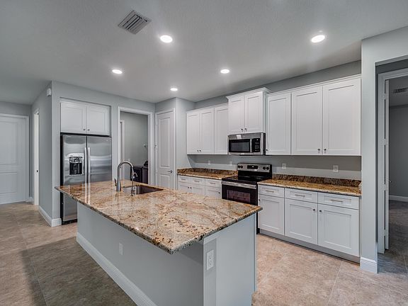 New energy efficient 4 BR 2.5 2 Garage Porch Synergy Builders CBS with metal roof and impact package located on paver with sidewalks on Alexander Run. High and dry house site with extra fill, lightning rod protection. water soft, security door protection.