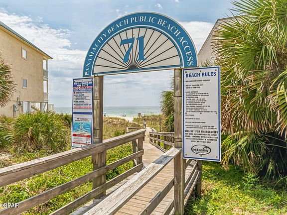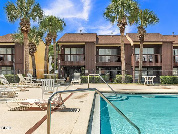 This 2-bedroom, 2-bath unit offers a fantastic opportunity to own a fully furnished coastal retreat in a community with no rental restrictions. Whether you're seeking a primary residence, vacation home, or investment property, this interior unit has everything you need for short- or long-term rentals. Buyers can purchase unit 17B individually or together with unit 17A, a fully upgraded end unit, for unparalleled flexibility and value. Owner financing is available, making this an even more attractive opportunity. Set in a quiet community with amenities such as tennis courts, bocce ball, a clubhouse, a dog walk, and direct beach access, this property offers the ultimate beachside living experience. Located just minutes from Pier Park, Frank Brown Park, and the Gulf of Mexico, it's ideally situated for relaxation and entertainment alike. While not as updated as its neighbor, unit 17B boasts the same incredible pool and bocce ball views and comes fully furnished.