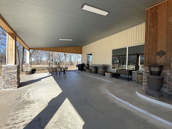 Beautiful barndominium style home on 40 acres. This 4 bedroom home is well designed with a master bedroom with walk in his and her closets. His closet has a built in gun safe. Master bath has jetted tub, large walk-in shower, double sinks and built in makeup vanity, 2 additional bedrooms are connected with jack n Jill style bathrooms. The open floor plan has a beautiful rock fireplace in the living area and custom built cabinets with exotic granite countertops in the kitchen. Elevator or stairs will take you up to a 234 square foot room that is perfect for a fourth bedroom, office, or it is wired for surround sound making it a perfect theater room. The 730 square feet of garage space makes for a great work shop. Also, there is a 8x40 storage container with an attached 15x40 carport and a large garden spot. This is a one of a kind beautiful home. A must see.