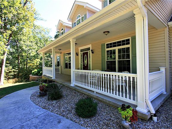 Incredible custom 1-1/2 story on 5.22 acres in quiet setting. Large front porch that provides covered entry into beautiful foyer with arched doorways to dining & living rooms. Quickly notice gorgeous hardwood floors throughout plus 2 tier sculpted ceilings in dining room. Living room is large but cozy space. Triple arch custom pillar openings lure you to 21x20 Great room with soaring ceilings to reverse vault, impressive window wall, open balcony above, & stack stone w/b fireplace. Fantastic kitchen with custom cabinets having specialty interiors, quartz counters, double pantry, etc. Breakfast bar at sizeable breakfast room. Main floor laundry! Master Suite is super size with tray ceiling, custom walk-in closet, stunning bath with walk-in shower, double sink, & jetted tub. Upstairs has 3 incredible bedrooms, bath, & small loft area. Walkout LL has endless finishing opportunity (3/4 bath in place). O/S garage has tall doors & storage area. Covered and open deck, patio, pond, woods...YAY