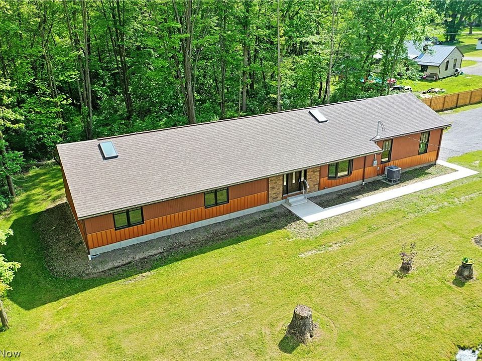Located in Craig Beach Village, this newly completed 3 bedroom 3 bath Ranch features trendy exterior of wood, stone veneer, and steel siding as well as 2X6 construction and concrete basement walls. Interior highlights include vaulted ceilings, skylights, vinyl flooring, and wood framed Anderson tilt in windows with wooden blinds. The kitchen features KraftMaid cabinets with soft close drawers, under cabinet lighting, granite counter tops, and GE stainless steel appliances. Directly off the kitchen is nice sized laundry room. And the master suite has it all: The master bedroom has a vaulted ceiling, skylight, walk in closet, sitting/office area with atrium door to the outside. The master bath has a 4 foot tiled shower, jetted tub, dual sinks, and large glass block window. The other 2 baths are tastefully completed with tile highlights. The sideload attached garage has been drywalled and includes sink, hot and cold water, floor drain, electric, door opener, and keypad. This all sits on an oversized lot with 200 frontage and private backyard lined with woods and privacy fencing. Best yet, the beach is only a 15 minute walk and Boat Club is in close proximity!
