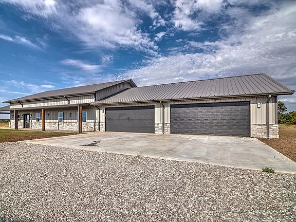 For more information contact Darren or Jana Bridges at 580-255-4893. Wow! Brand new home ready for you to move right in! This fantastic custom built metal home on 29.28 acres has been finished with attention to detail! This home boasts 3 total bedrooms, office with built-ins, huge recreation/media room upstairs, tons of storage, primary suite with jacuzzi tub, walk in shower, and walk in closet that doubles as a saferoom. The well designed kitchen has Fisher & Paykel ice maker, dishwasher, ovens, microwave, Thor gas stove with griddle, built in refrigerator, massive island, walk in pantry, and so much more. The family room is open to the kitchen and has windows that frame the beautiful view of the land, stone fireplace with gas logs, and entrance to the expansive covered patio. The covered porches run the length of the home on both the front and the back with a 20x40 patio at the south end of the home with fireplace and vaulted ceiling- The perfect place to watch the big game or enjoy the sunrise with a cup of coffee. If the house isn't enough, wait until you see the over 2000 square foot garage. Room for 8 cars, insulated, 2 garage doors with openers. This property has a Generac generator, on demand water heater, buried propane tank, water well, aerobic septic system, and so much more. This is your chance to own a brand new, custom built home, without the headache of going through the building process! Call for your opportunity to view this amazing property.