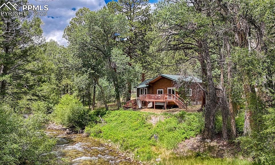 Views, Views, and More Views! This enchanting furnished log cabin sits right on Chalk Creek, offering over 450 feet of creek frontage and jaw-dropping views of the iconic Chalk Cliffs to the north. Nestled on 2 private, wooded acres, this unique property borders both National Forest and Chalk Creek, providing unmatched access to nature, fishing, and hiking. Located just steps from the Raspberry Gulch Trail and access to Wrights Lake, this is a rare opportunity to own a true Colorado mountain retreat. The charming 2-bedroom, 2-bathroom log home features hardwood floors in the kitchen and foyer, wood laminate throughout the main living areas, and tiled bathrooms for easy maintenance. Upstairs, a spacious enclosed loft provides the second bedroom space with ample storage, perfect for guests or a home office. Listen to the soothing sounds of Chalk Creek from your window, or step out onto your deck to take in the serene surroundings. The detached 2-car garage offers an additional workshop space and tool room for all your mountain projects. Two unique sheds are included—one is a whimsical wood slice potting shed, ideal for gardening, an artist studio, or a magical playhouse. The second is a modern utility shed for extra storage. A charming greenhouse with a potting bench is attached to the garage, perfect for the avid gardener. Located just 5 minutes from Mt. Princeton Hot Springs, on the street affectionately known as Bunny Lane, this property is a dream for those seeking peace, privacy, and endless mountain views. Don’t miss your chance to own a creekside mountain escape along Chalk Creek! The information contained herein should be verified after Buyer contracts to buy the property.