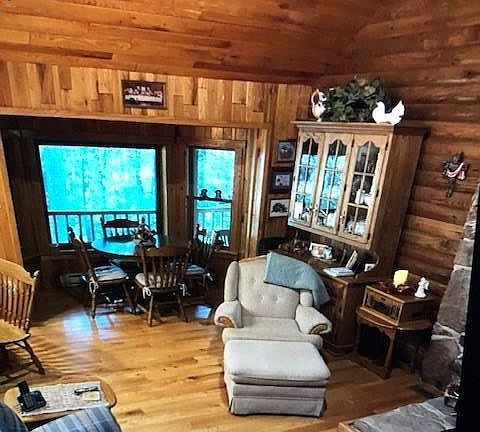 Beautiful one of a kind Log Home on 2.5 private wooded acres and minutes to State Game Lands, which has 3 bedrooms, 2 full baths, Solid Oak Floors and Trim, PIne tongue and groove walls give the house character, solid stone wall with Coal Burning stove in Living Room. Finished basement with kitchen, Full Bath and Bedroom gives endless potentials for various needs. Full wrap around covered porch, 4 season Sun Room and an enormous Pole Building which is 36x46, insulated, has it's own Propane Furnace with A/C, 200 Amp service, also running water with 12x12 Garage doors and 14 ft ceilings. Too many amenities to list - set up your private showing before this gem is gone. Within 5 moninutes of Raystown Resort.