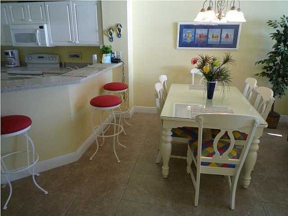 Celadon unit 402 is the beach getaway you've been dreaming of! With 1157sq.ft. floorplan, this oversized 2 bedroom, 2 bath gulf front condo is superb for entertaining and lives like a beach house in the sky! This unit is features an additional bunk room and has the footprint of a standard 3bed condo - sleep 8!. Perfect elevation within the stack! Riveting Gulf views from the kitchen, living room, and master bedroom are framed by very attractive, seaside inspired interiors with comfort and style in mind. This offering features all the extras such as tile flooring in living area. Property is very clean and well maintained. The gourmet kitchen features breakfast bar, loads of cabinet space, and is fully stocked & family ready! Ocean Front master bedroom
