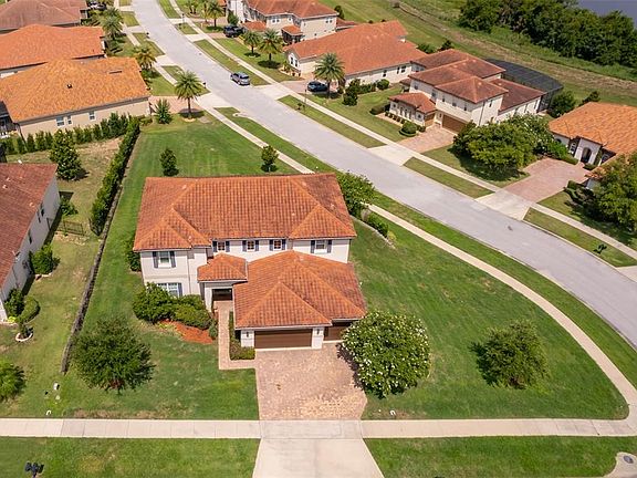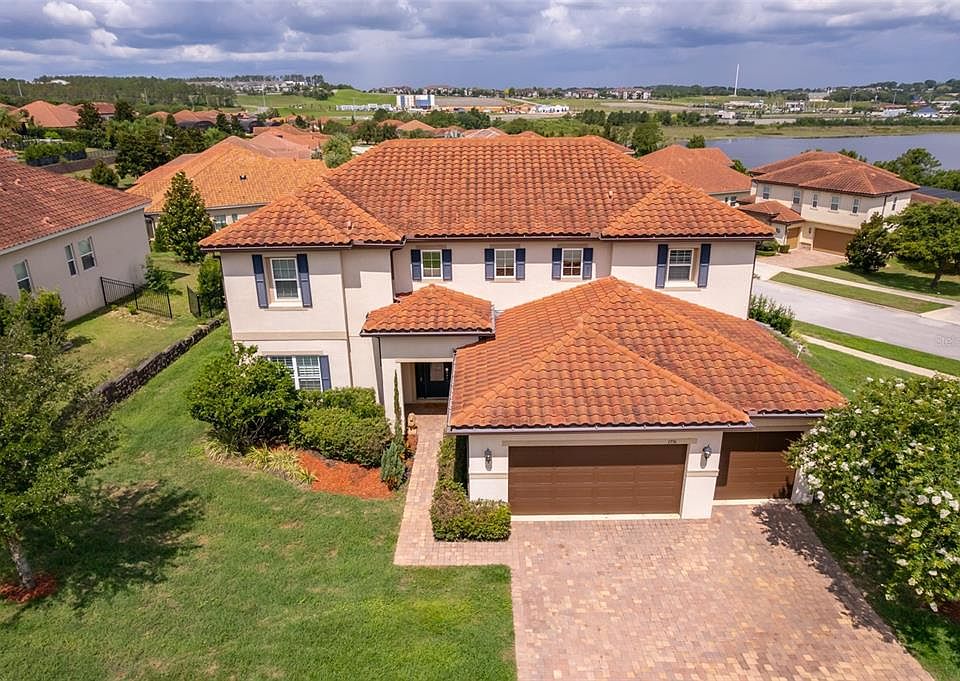 Experience refined living in the exclusive gated community and enjoy the peaceful atmosphere of Bella Lago with the tranquil presence of Lake Felter just steps away. This custom-built residence offers nearly 3,640 sq. ft. of impeccably crafted living space set on a premium corner lot, combining elegance, functionality. Designed for both elevated everyday living and effortless entertaining, the home features 5 bedrooms and 3 bathrooms, each thoughtfully arranged for comfort and privacy. The grand foyer opens to soaring 20-ft ceilings and expansive windows that flood the interior with natural light, creating a warm, inviting atmosphere. The newly renovated chef’s kitchen features a 5 ft x 10 ft island, granite countertops, gas cooktop, double wall ovens, new stove and microwave, walk-in pantry, and modern cabinetry. The first floor includes plantation shutters, an electric fireplace, tile flooring in common areas, wood-style flooring in the living room, and carpeted bedrooms. Upstairs, the spacious primary suite offers large walk-in closets. Outdoors, the home includes a custom retaining wall, enhanced front landscaping, and a backyard ready for a pool, garden, or future outdoor living space. Close to major highways, schools, shopping, and attractions, this home delivers luxury, space, and convenience within an exclusive gated community.