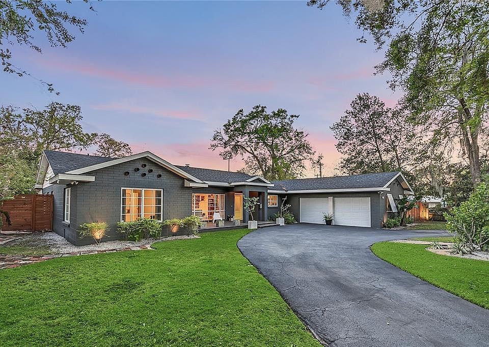This Maitland home is infused with West Coast style and customized with great detail and function, truly like no other. Situated on an oversized lot in Dommerich Estates, this modern ranch stretches across all corners with nearly 3,700 square feet and an abundance of outdoor living, providing the perfect backdrop for hosting family and friends. Natural light draws you into a front room gathering space with fireplace feature, two additional living spaces and dedicated dining. The chef’s kitchen showcases an expansive island with granite countertops, loads of workspace, task lighting, custom tile backsplash, under/top-mount lighting and an eat-in space for a kitchen table that opens to the pool oasis. This rare four-way split plan boasts four bedrooms, four-and-a-half baths, two separate outside areas, hardwood floors throughout and French doors that seamlessly blend the dining room and kitchen. The enlarged owner’s retreat has walk-in closets and a sitting area/office. The fourth bedroom, which features its own entrance, is a terrific guest suite, studio, home office or flex space. The circular driveway and generous front porch make for a beautiful entrance. Other features of the home include a new roof 2016, new water heaters 2020 and 2022, renovated baths, exterior paint 2020, redesigned pool/saltwater system, new landscape and outdoor lighting. A-rated schools include DES, MMS and WPHS.