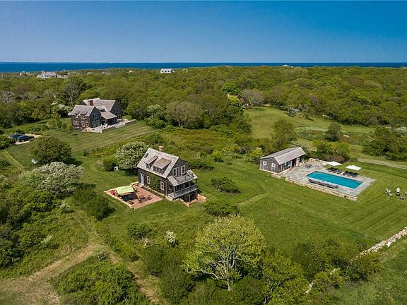 This exceptional Block Island property proudly stands along Corn Neck Road, commanding attention with its remarkable 7833 square feet of contemporary sophistication. Comprising a main house, barn, a delightful two-bedroom guest cottage, and a pool house, it completely redefines the notion of a luxury beach residence on Block Island, unveiling a hidden gem that exceeds expectations. Architecturally designed with Hemlock post and beam construction, the main house and barn boast clean, elegant lines and intricate detailing, seamlessly integrating indoor and outdoor living spaces that offer sweeping views of the island. The Guest Cottage, exuding timeless charm, seamlessly blends into the meticulously landscaped property, featuring a brick patio, two guest suites, an inviting living area, and a balcony—all showcasing breathtaking vistas. The entertainment hub of this oasis begins at the pool area, where a saltwater pool and a well-appointed pool house await. Complete with a kitchen, built-in grill station, a cozy Brick Room with a gas fireplace, and a half bath, this space is ideal for both starting and ending your day in style. Just beyond the pool's stone wall lies an open, conserved lot leading to the East Side beaches via the Clay Head Trail. This property embodies a lifestyle of tailored simplicity, offering nearly every amenity you could desire for a Block Island retreat, making it the perfect canvas to create your home.