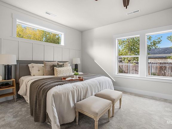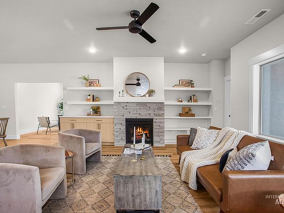 Experience elevated living in this thoughtfully designed 3-bedroom, 2-bath home, complete with a spacious office, perfect for remote work or creative hobbies. The open-concept kitchen shines with sleek quartz countertops, a gas range, and premium vinyl plank flooring, seamlessly flowing into a bright and inviting living area featuring a cozy fireplace and custom built-in cabinetry. Two generously sized guest bedrooms share a stylish bathroom, boasting quartz counters, a tiled shower/bath, and luxury tile flooring. The primary suite serves as a private retreat, offering dual vanities, a fully tiled step-in shower, and high-end quartz finishes, all accented with designer touches throughout. Situated in a prime location near freeway access, Albertsons Marketplace, the YMCA, and Meridian’s top shopping and dining, this home delivers both convenience and sophistication. Plus, with the HOA covering front and back lawn care, you’ll enjoy a truly low-maintenance, turn-key lifestyle. Don't miss this opportunity!