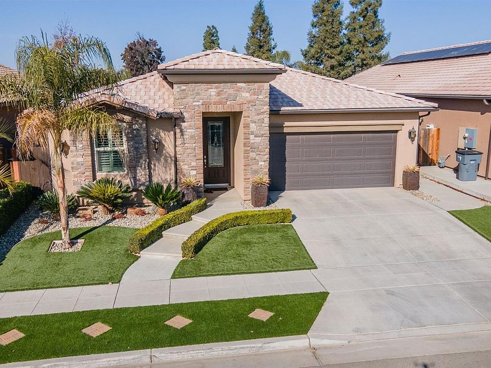Immaculate Encore floorplan in Sageberry at Copper River Ranch. This gorgeous home offers 3 bedrooms, 3 bathrooms, an office/den, family room w/ large windows and sliding glass doors overlooking the golf course, a gourmet kitchen w/ large center island, granite countertops, and stainless steel appliances w/gas cooktop. Unique floorplan with first bedroom in front of the home w/ separate full bathroom, 2nd bedroom next to the kitchen w/ en-suite bath. Isolated master suite with golf course views, separate tub and walk in shower. The custom designed backyard offers a covered patio, stamped concrete, and bench seating so you can maximize the golf course setting. Award winning Clovis Schools! Schedule a showing to see this incredible home today!