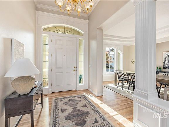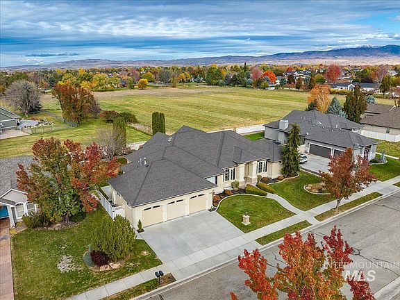 A rare gem in the coveted and established Vienna Woods community! This hard to find, energy-efficient single level w/basement home has been meticulously maintained. Highlighted upgrades include a newly refinished sand and seal hardwood floor, new carpet, and a remodeled primary suite bathroom. Every space in this well designed custom home lives large. Featuring 5 large bedrooms, an office, formal dining, formal living, a great room, basement recreation room, and bountiful storage including a walk-in pantry. This home truly has the area for any need. An oversized 3-car garage features convenient pull-through access to the backyard. Located in the heart of N. Meridian with all of its conveniences, yet completely tranquil in its surroundings. This home backs to a large acreage parcel giving the already grand yard an even larger feel with mature landscaping both within and beyond the property. Open space and mountain views toward Bogus Basin compliment this picturesque setting and home.