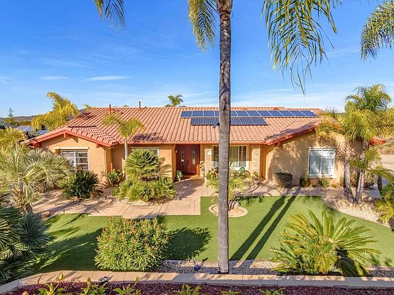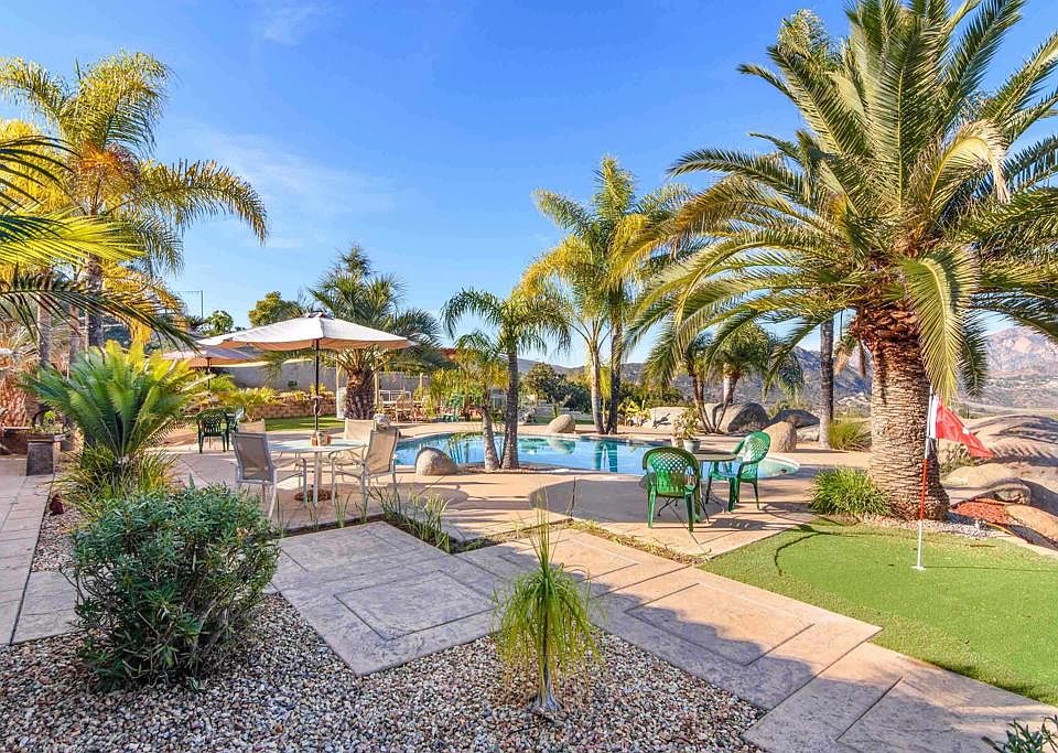Gorgeous Upgraded Alpine Pool Property w/ Panoramic Views of El Capitan Mountain! This stunning estate boasts beautiful panoramic views of the surrounding hills & landscape and a fully-remodeled luxurious resort-style front & backyard boasting a sparkling blue pool, mini putting green, turf lawns, stamped concrete walkways, multiple patios, and scattered tropical palm trees throughout making it feel like vacation! The home features a remodeled kitchen w/ a large eat-in center island, natural stone counters and stainless steel appliances including a full-size wine cooler & double convection oven. The kitchen opens to the family room w/ a remodeled two-way, see-through fireplace connecting to the formal dining room. Take in lovely views throughout the kitchen, family & dining, while waking up to the mountains from the large primary suite featuring private patio access & an en-suite bathroom w/ dual sinks, a separate vanity area, large cedar walk-in closet, walk-in shower & separate jetted tub overlooking the view. The exterior boasts a spacious covered front porch, an large breezy covered side patio, a separate covered back patio, built-in garden beds w/ flourishing fresh tomatoes, multiple fruiting citrus & fruit trees, 2 fully paid solar systems, and plenty of space to build across its expansive near 1.5 acre corner lot. Embrace amazing sunsets & views while swimming in the pool or sitting in any of the multiple patios, and wonderful stargazing at nights. Enjoy plenty of parking for your boat, RV and all your toys in the attached direct-access 3-car garage & sprawling oversized driveway. This entertainer's home is a must see, schedule a viewing today!