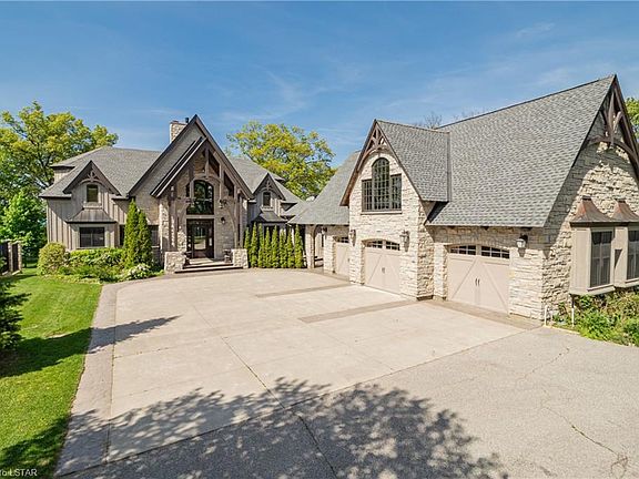 Prepare to be enchanted by this extraordinary Pineridge Timberframe work of art: a 6500 sq ft 5 bed/5 bath lakefront treasure unlike any other. Astonishing craftsmanship, inventive design & superior finishing are evident throughout this one-of-a-kind executive family estate sitting on 1.2 acres w/ 100 ft of private beach staging both sunsets & sunrises! From the towering natural stone Rumford fireplace & authentic post & beam framing, to the fully equipped theater room & in-floor heat, the perfect balance of rustic elegance & modern features is palpable. The incomparable artisan iron work integrated into the breathtaking open staircases provides winding curves so graceful that the experience of simply navigating the home becomes exquisite. Standard luxury fundamentals are also included: gourmet kitchen, sprawling main floor master suite, steam sauna, 3.5 car garage w/ 4 roll-up doors-list never ends. Priced well below the cost to build this superb masterpiece, the value is exceptional.