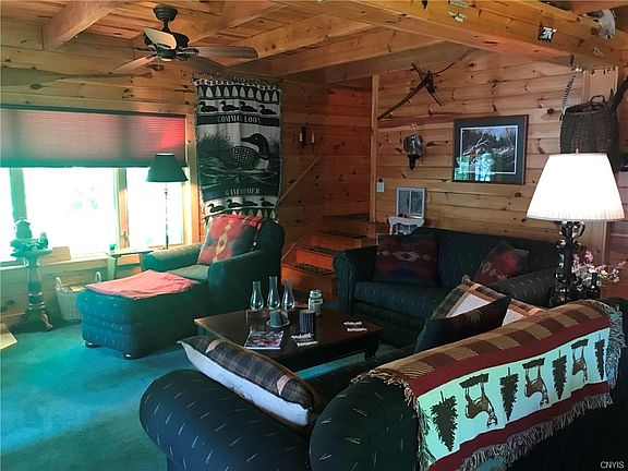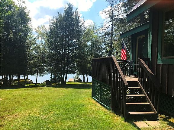 Beautifully maintained, this chalet offers privacy and gentle 160' of waterfront including a small beach, dock and lean to with a firepit. The water access home is 3 season but can easily be fully year round with some modifications. Just a short boat ride from town or one of the marinas, you can enjoy this location next to Great Camp Echo on Raquette Lake for 6 months just the way it is. Plenty of woods for privacy and yet there is a beautiful open area for games and activities. The home has 3 bedrooms and an enclosed front porch with another sleeping or napping area. The living /dining room has a gas log stove for ambiance and heat to take the chill off the cooler Adirondack mornings. Electric heat too. The new septic system is sized for a 4 bedroom home so if an addition with a bedroom is in your plans, you are all set. UV cleaned lakewater system, quick drain syste