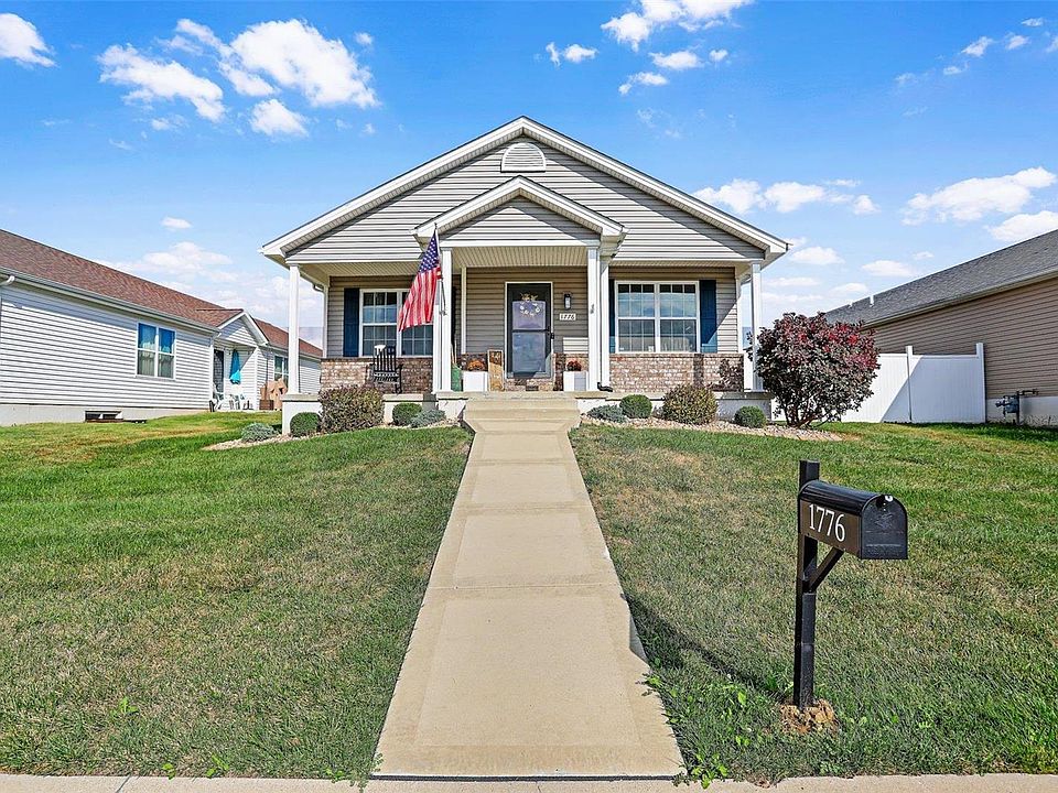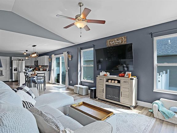 Built in 2019, this charming 2-bedroom, 2-bathroom home features an open floor plan with a vaulted ceiling in the living room. The kitchen boasts modern gray cabinetry and a stylish herringbone marble backsplash. Luxury vinyl plank flooring runs throughout, with cozy carpeting in the bedrooms. Both bedrooms include walk-in closets, and the primary bedroom comfortably fits a king-size bed. The attached primary bathroom offers a convenient walk-in shower. Lower level has some drywall and epoxy flooring, ready to trim out. Enjoy low-maintenance living, with a small fenced area that provides a private patio, perfect for relaxing outdoors or bringing along your favorite pet! *This property offers studs out maintenance free living except for care of fenced in area. Do not miss out on this pristine home; schedule your appointment today!