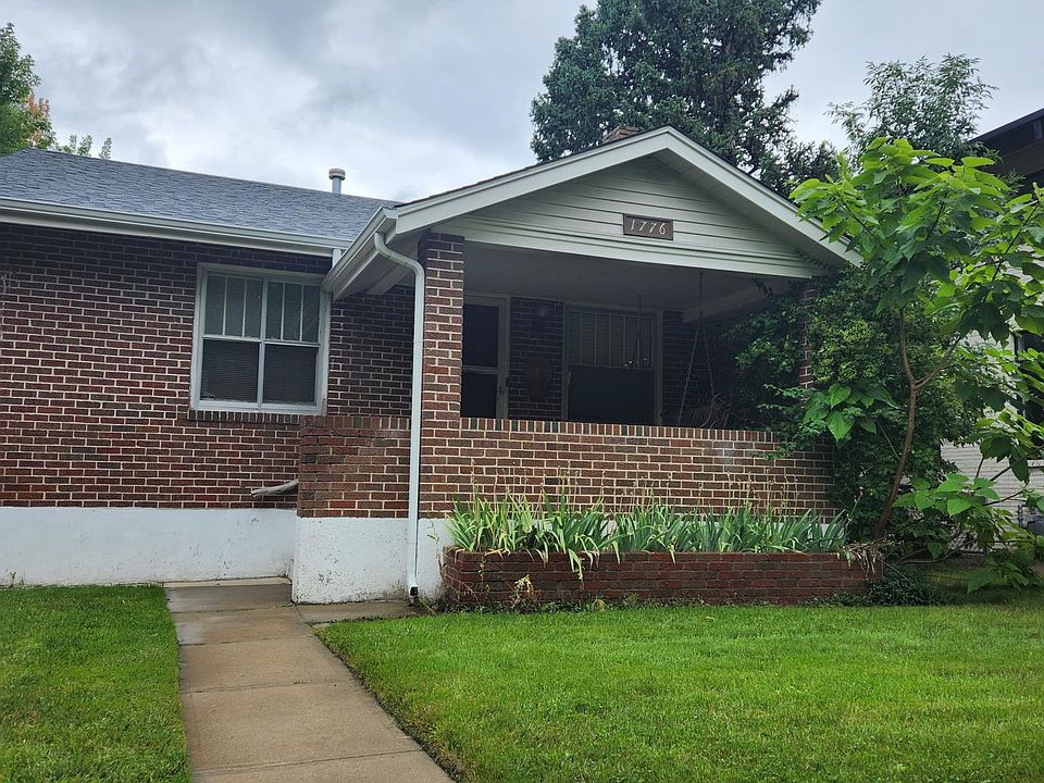 1940s brick bungalow in a great neighborhood convenient to Washington Park (less than a mile), light rail, shopping and restaurants. Great block just off Downing! Three bedrooms (2 on first floor, 1 in basement) and two full baths. Hardwood floors on first floor. Private front porch with swing. Sprinkler system. Hot water heat with separate controls for first floor and basement. Ceiling fans. Large closets and plenty of storage. Retro 1940s original metal kitchen cabinets. 888 square feet on first floor, about the same square footage in the basement. Basement features one bedroom and bath, family room with "wet bar", new carpet and flooring. Washer & dryer. Off-street parking. Motion activated security light at back door. Seasonal lawn mowing included. No smoking allowed INSIDE house. Prefer no pets; one dog only considered with 'pet interview'. Preference: 1 to 2 people (NO MORE than a total of 3 people). Note: Renters pay utilities.