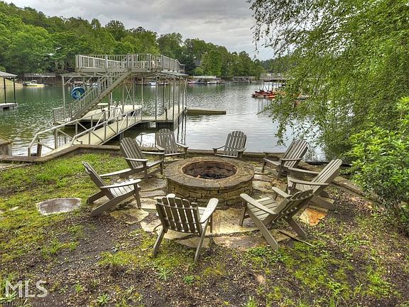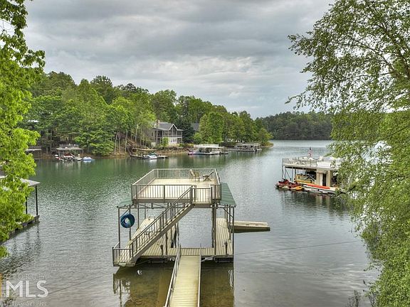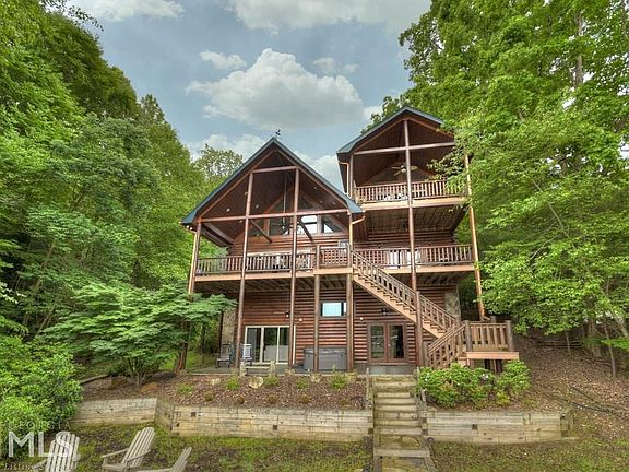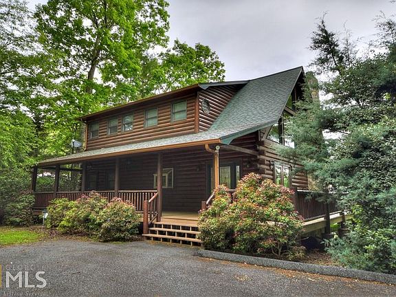Lake front & mountain views, this is the one for you! This gorgeous true log mountain retreat is located in the highly sought after Necowa Cove subdivision on Lake Blue Ridge and just minutes from the historic downtown Blue Ridge. Granite countertops, stainless-steel appliances, cathedral ceilings, lots of fixed glass windows, floor-ceiling stacked stone fireplace, & modern accents galore all add to the character & charm of this mountain home. The master suite features a jetted tub, separate walk-in shower, & a private balcony overlooking the glistening waters. Just steps down to the water from your back door, enjoy time with friends & family in the year-round deep water & float on your two story dock, or hang by the fire pit. Currently on a rental program with excellent rental history, this home would make the perfect investment or part-time mountain getaway. **All furnishings are included in purchase price**