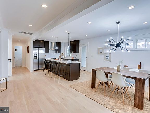 Spectacular renovation offered on 2 expansive levels with a total of 4 bedrooms and 4.5 bathrooms! Walk in to an open concept floor plan boasting natural stained hardwood floors, ample amounts of natural light, two fireplaces, and an elevator. Chef's kitchen has sleek cabinetry and quartz countertops with full suite of stainless steel appliances. Main level offers two large bedrooms that both walk out to a deck overlooking the backyard. Both bedrooms have en-suite bathrooms with designer tile and spa like accents. Basement has an additional two bedrooms and two bathrooms, laundry room and spacious entertaining area. Lush backyard has a fire pit perfect for summer nights! Extended driveway allows for multiple parking spots. Colonial Village is a quiet neighborhood that gives you the feeling of living in the suburbs while still offering a close commute to downtown DC as well as Silver Spring MD.