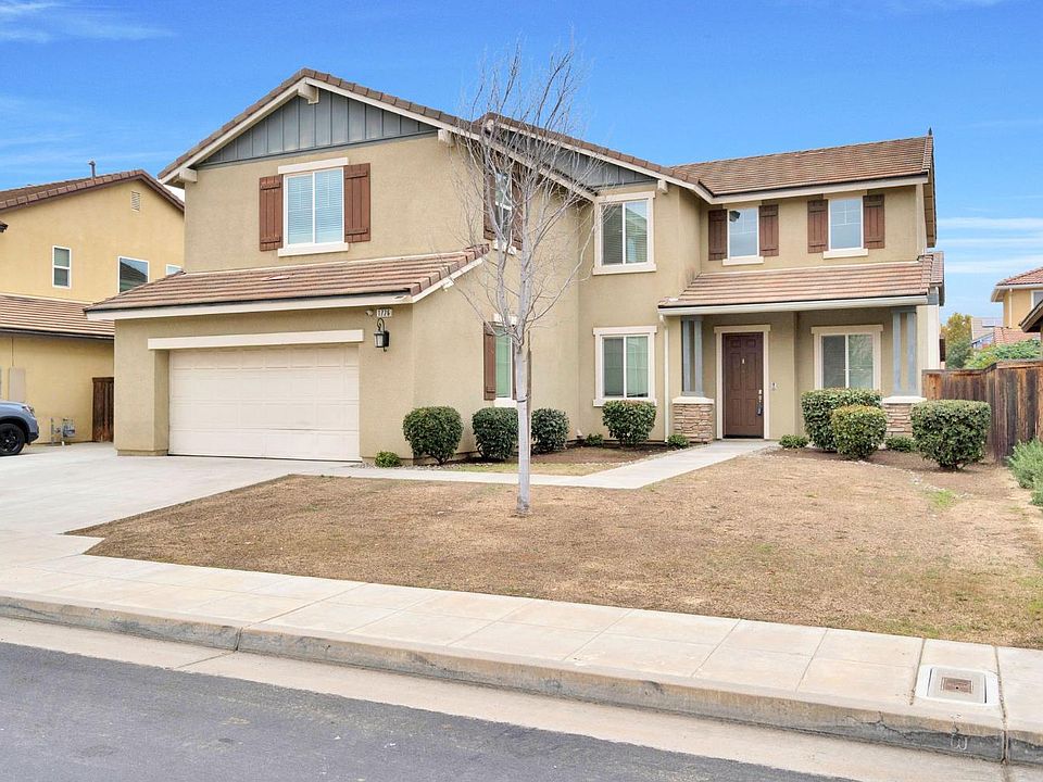 Freshly painted and move-in ready! This spacious single-family home in Clovis' desirable Loma Vista community features 4 bedrooms, 4 full bathrooms, and a large upstairs loft. The functional floor plan includes two living rooms and two primary suites one upstairs and one downstairs perfect for guests or multi-generational living.Inside, enjoy high ceilings, ceiling fans in every room, and brand-new carpet throughout. The open-concept kitchen offers granite countertops, a center island, pantry storage, and stainless-steel appliances, connecting naturally to the main family room for effortless entertaining.Additional highlights include dual-zone HVAC, recessed lighting, energy-efficient windows, and an indoor laundry room. The tandem 3-car attached garage provides extra space for a home gym or storage.Outside, the low-maintenance landscaped yard offers privacy and convenience. Located near parks, walking trails, and award-winning Clovis Unified schools, this home delivers modern design, comfort, and practicality in one of Clovis' most sought-after neighborhoods.