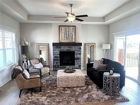 MODEL NOW FOR SALE!! The Manchester II by Wynne Homes. Staged and ready to sell!! This is a very affordable reverse. This charming home is a delightful blend of cozy and spacious, with a unique reverse layout that offers a fresh perspective on comfortable living. Nestled in a serene location, it features two bedrooms upstairs, offering a quiet retreat and privacy for its occupants. The main floor is thoughtfully designed to maximize enjoyment and relaxation, with an open living space and a maintenance-free deck that invites you to unwind in style. But the surprises don't stop there. As you head downstairs, a generous rec room awaits, perfect for family gatherings and entertaining guests. Adjacent to it is a third bedroom, providing flexibility for various living arrangements. Plus, the backyard of this lovely home offers a picturesque view of the surrounding trees, creating a tranquil and nature-inspired backdrop for your daily life. Welcome to a house that's designed to make every day feel like a retreat. You'll find all of that at Gardner's newest premier community, EAST of I-35!! 175th St. & Clare Rd - Prairie Trace!! Prairie Trace has amazing amenities including an upscale swimming pool with slide, pickleball court, playground area, outdoor fireplace and poolside pergola! Taxes and room dimensions are approx. PTE22 Move in Ready