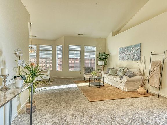 40k Price Drop! Sought after single story in Las Palmas. Walking in the front door you will love the tall ceilings and wonderful natural light. There is a spacious formal dining room just outside the kitchen. This one is ready to move in with new carpet and paint! The kitchen is updated with granite counter tops and custom cabinets. Cozy family room off the kitchen has a warm fireplace and double doors leading out to the private backyard. The backyard has beautiful mountain sided views and a walking trail. Primary bedroom has plenty of room to stretch out and access to the backyard. The 4th bedroom has an open wall off of primary bedroom making it the perfect nursery, gym or office. Primary bath has a large stall shower and separate soaking tub and new flooring. Huge walk in closet with access from bedroom or bath is of optimal convenience. Handy indoor laundry completes the package!